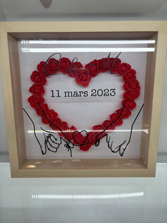 Cadre 3D avec roses rouges personnalisable avec doigts entremêlés