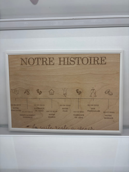 Cadre plaque bois personnalisable "notre histoire"