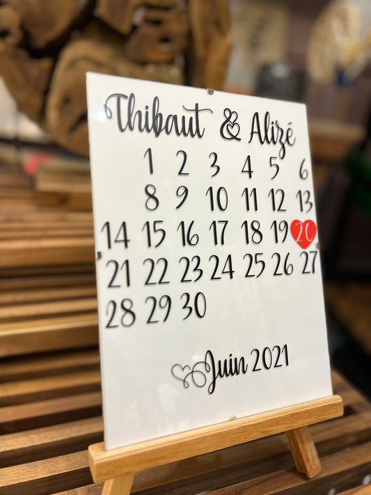 Plaque verre personnalisée calendrier