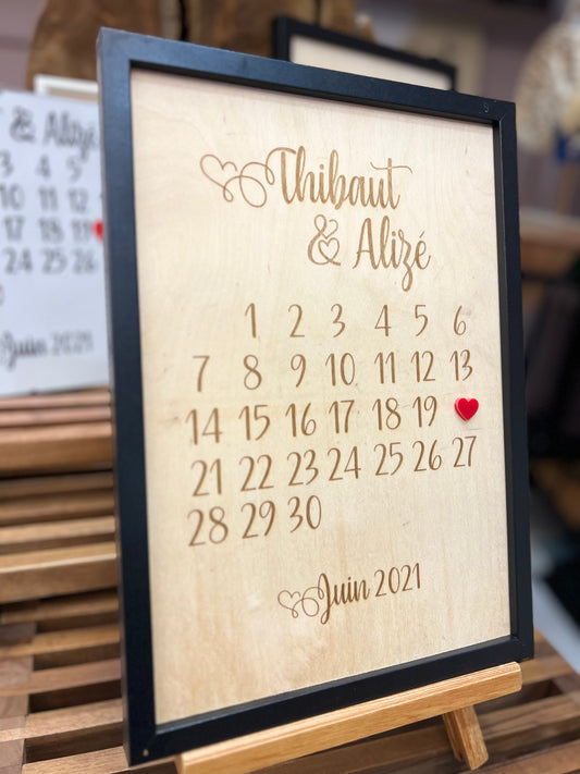 Cadre calendrier gravé