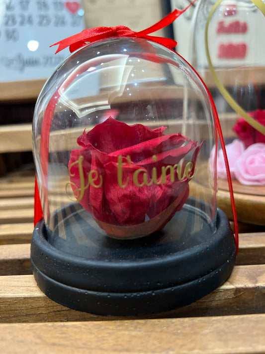 Cloche "Je t'aime" avec rose éternelle rouge