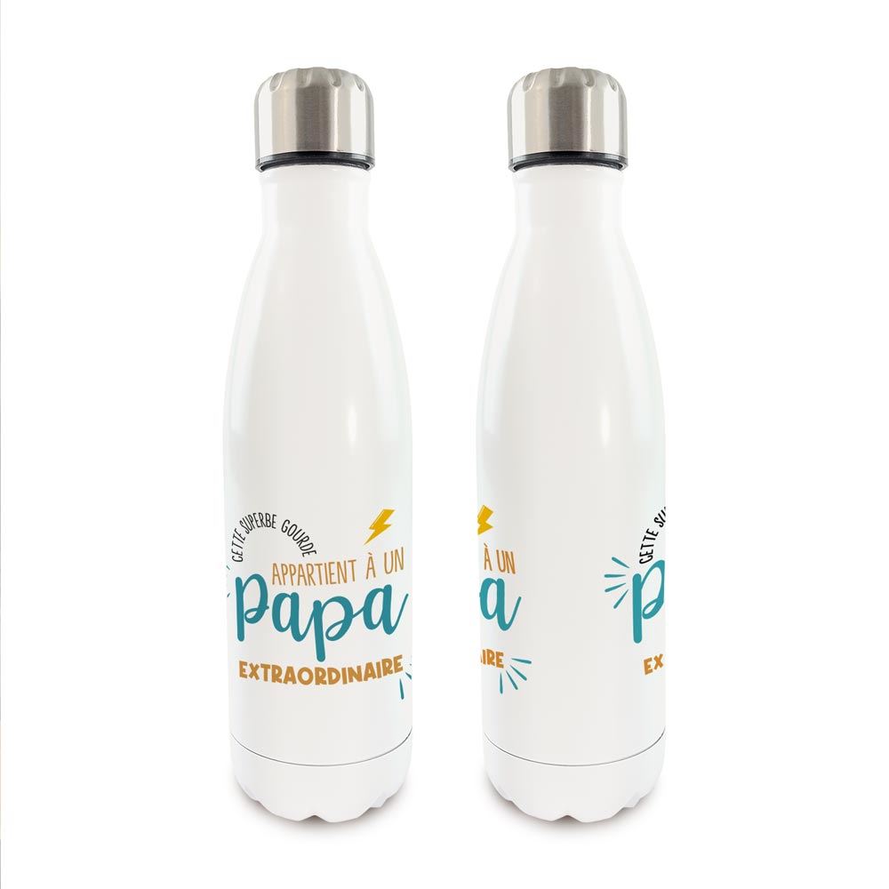 Gardez papa hydraté et souriant avec notre gourde isotherme "Papa extraordinaire" ! Parfaite pour ses aventures quotidiennes, elle maintient ses boissons à température idéale pendant qu'il sauve le monde (ou qu'il fait semblant). Un cadeau qui dit "Merci d'être aussi cool" sans avoir à prononcer ces mots embarrassants. Parce que même les super-héros ont soif !