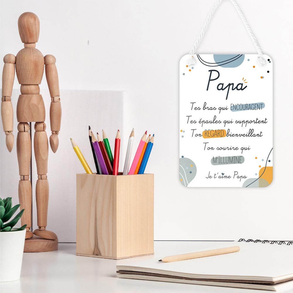 Surprenez votre super-héros du quotidien avec cette plaque décorative blanche "Je t'aime Papa" ! Un petit bout de mur qui dit tout haut ce que votre cœur pense tout bas. L'arme secrète pour déclencher un sourire paternel et peut-être même vous faire pardonner cette fois où vous avez emprunté sa voiture sans demander. Déco rigolote et touchante garantie !