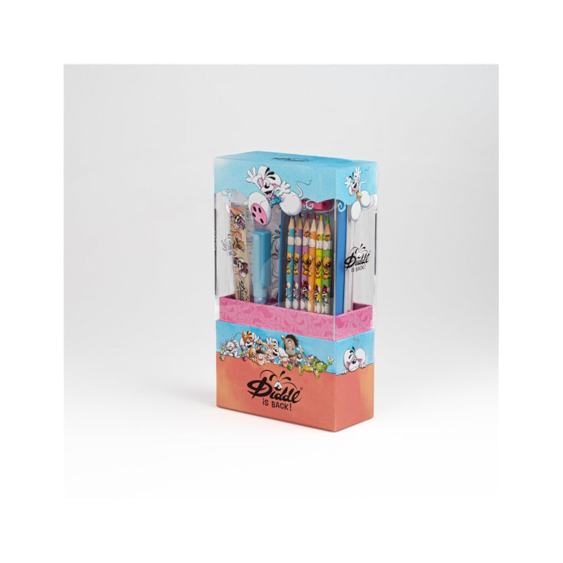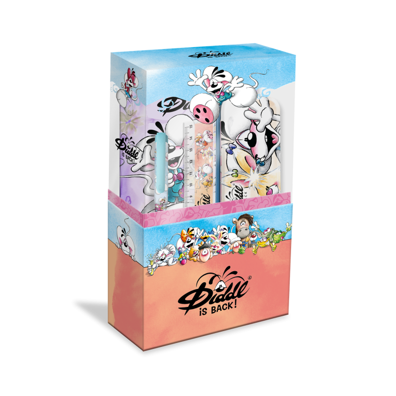 Découvrez le set écriture Diddl, un ensemble papeterie premium aussi mignon qu’utile ! Avec son bloc-notes A6, stylo, crayon, gomme et règle assortis, il vous accompagne partout pour griffonner, dessiner ou noter vos idées les plus folles. Son design exclusif Diddl ajoute une touche de fun à vos bureaux sérieux. Parfait pour petits et grands rêveurs qui aiment écrire en s’amusant !